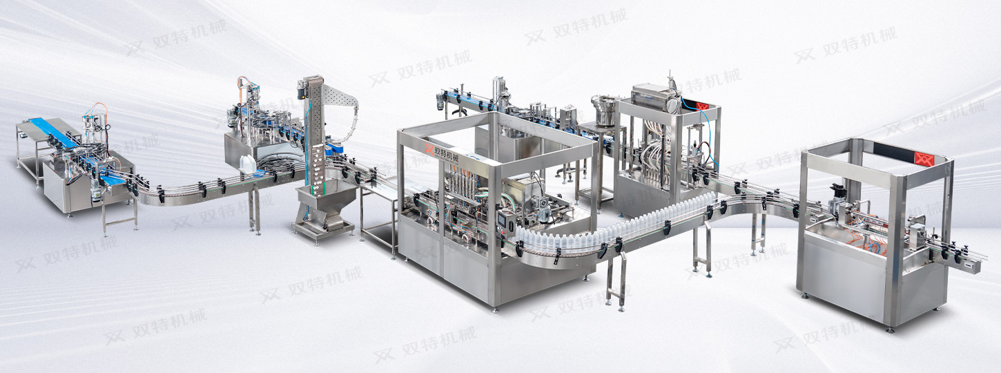 双特机械专注于洗瓶--烘干灭菌--灌装--真空旋盖--巴氏杀菌--贴标--套膜--装箱--码垛全系列的成套灌装生产线。